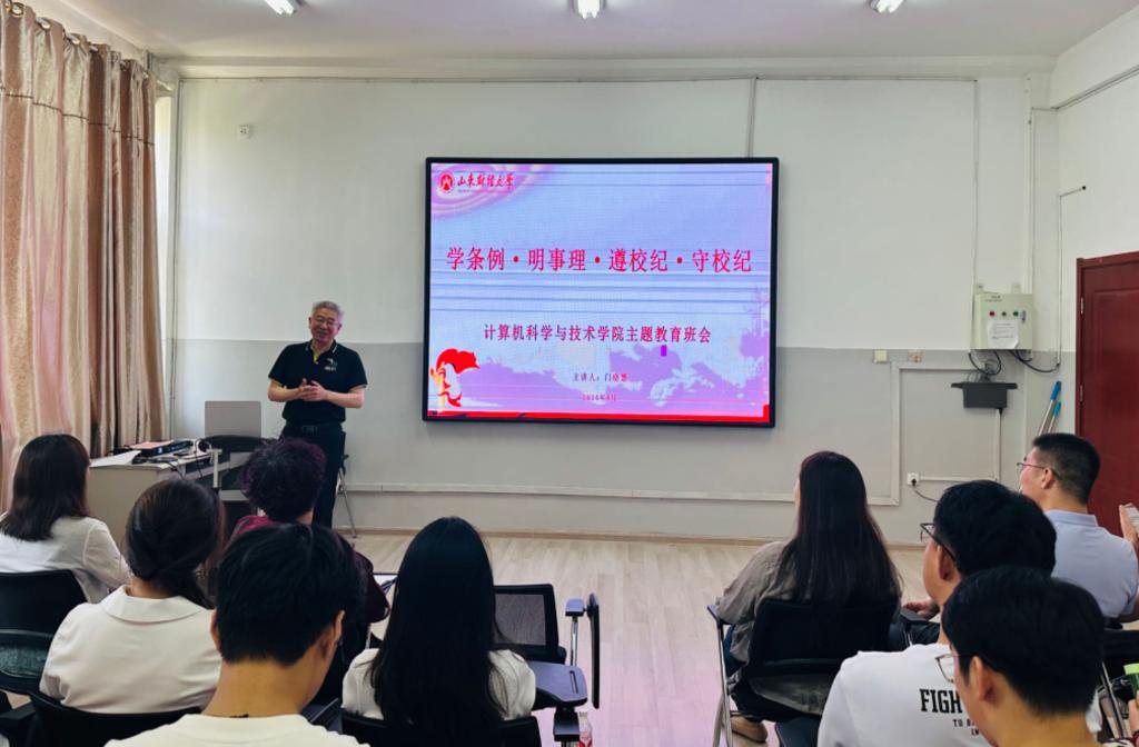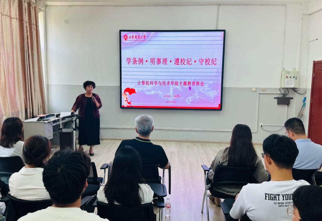 为进一步增强大学生纪律意识,打造良好校风、学风,6月18日,计算机科学与技术学院2201班在燕山校区1404召开“学条例·明事理·遵校纪·守校纪”主题班会。副校长张新受邀参加班会,学院党委书记杨春丽,党委副书记吕海霞、李云枝及全体辅导员共同参加活动。
