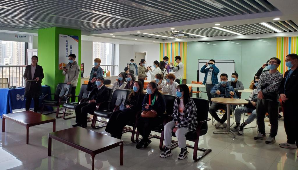 在科技展厅讲解员详细介绍了华天软件的发展历程,有针对性的讲解了“数字互联”、“智能制造”、“智慧生活”、“3D应用”等多个产品线和业务模块,同学们深切感受到科技的力量和创新的魅力。