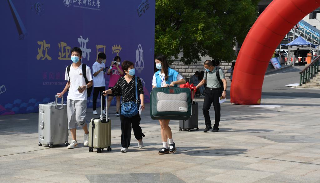 迎新现场,由学生会全体成员和学生志愿者组成的迎新队伍成为了校园中靓丽的风景线。此外,不少省内外提早到达的新生在熟悉了校园的环境后,立即参与报名志愿者,献出了他们的一份心意。