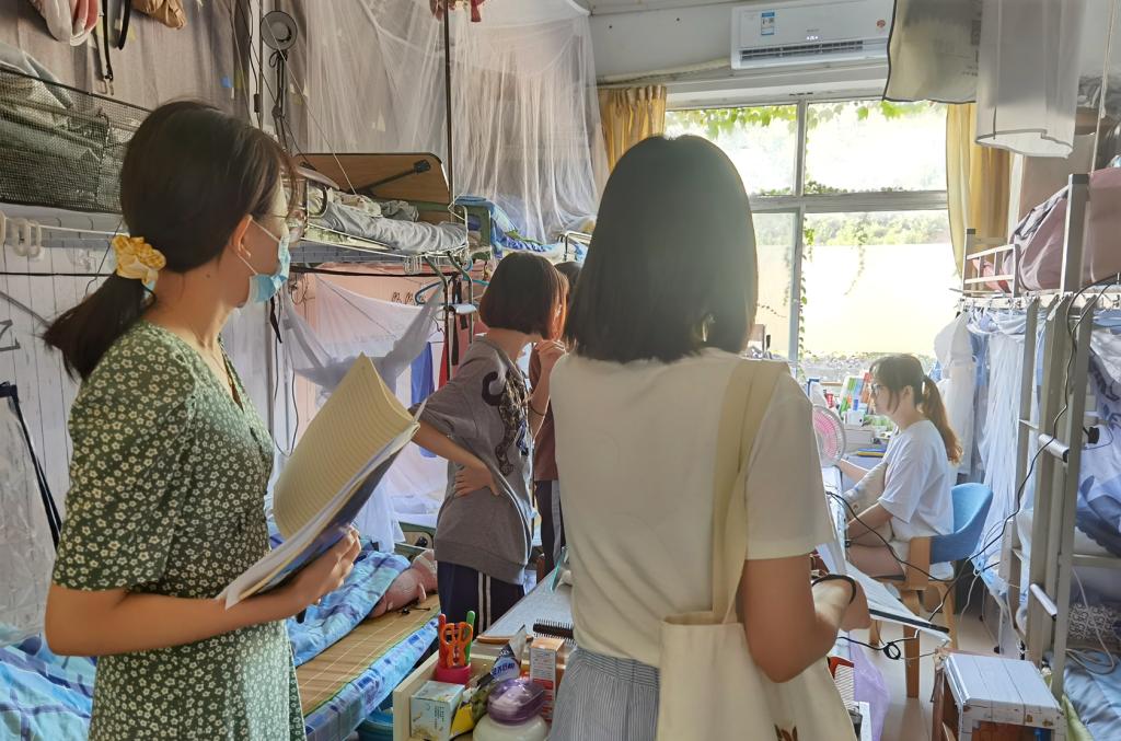 检查过程中,辅导员们还详细地了解了同学们的学习和生活情况,鼓励同学们要努力提高自己的专业水平和综合素质,少在宿舍聚集打游戏;疫情期间更要注意宿舍环境,注重个人卫生,每天三次宿舍通风,宿舍内定期消毒,晾晒被褥,及时清理垃圾。同时,要走出宿舍,积极进行体育锻炼,以增强自身抵抗力,强健自身体魄。