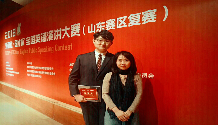 计算机科学与技术一班的赵宇同学在“2018外研社杯全国英语演讲大赛山东赛区比赛”中脱颖而出,勇拔头筹,荣获本次比赛特等奖,并将代表山东省参加国赛,此为我校参赛以来历史最好成绩!
