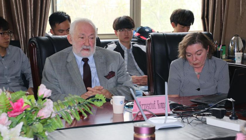 燕山校区一号教学楼学院会议室1406进行。波兰罗兹大学管理学院教授Dorota Witkowska与华沙生命科学大学应用信息学与数学学院教授Krzysztof Kompa同学院党委书记王有志、副书记吕海霞、副院长张云峰、沈晓红老师、李莉老师、王亭雯老师、国交处李老师及部分学生代表参加。