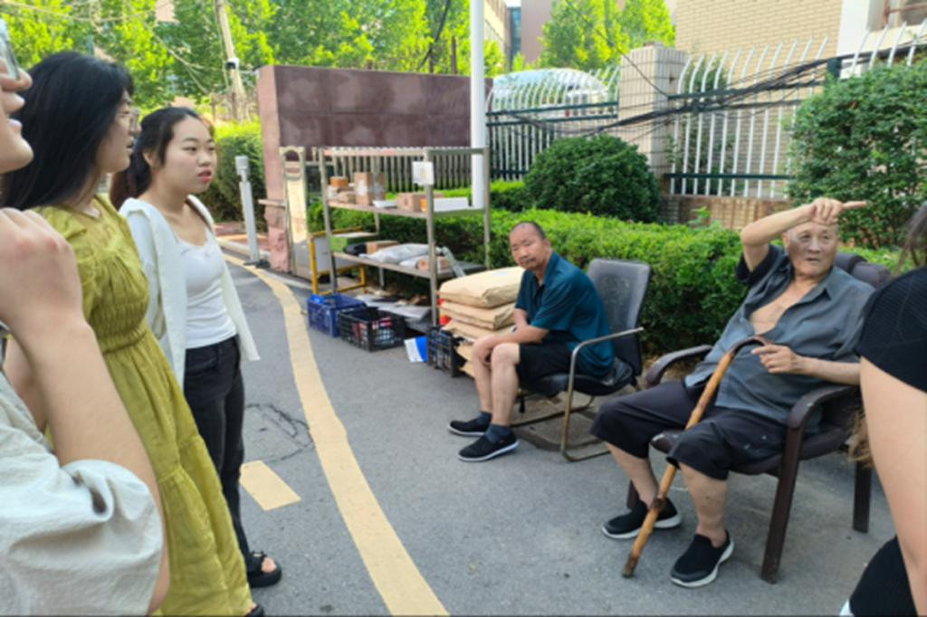 调研期间,“智惠银龄,康养齐鲁——AI赋能下的山东智慧康养”调研子团队深入山东省济南市历下区姚家街道仁合社区,与社区内的老年朋友们展开面对面交流。团队成员通过发放调查问卷、深度访谈等方式了解老年人的生活习惯和他们对智慧养老的具体期待。调查发现,社区虽已开展智慧养老宣传,但因缺乏专业指导人员,老人对智能设备的学习意愿不高。由此可知,山东智慧康养产业在政策推动下已具备一定基础,但在适老化设计、技术普及率等方面仍有较大提升空间。