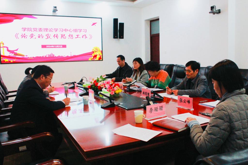 12月5日下午,学院党委理论学习中心组(扩大)集中学习研讨习近平文化思想。学校党委宣传部部长于洪良、副部长张艳霞到会指导。学院党委理论学习中心组成员参加学习,学院院长韩慧健列席本次会议。会议由学院党委书记杨春丽主持。