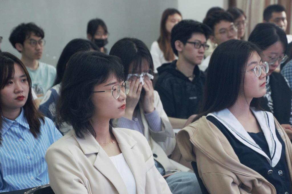 讲述中主讲人张婷婷几度哽咽,与会师生代表们更是不能自已,大家被一幅幅感人至深的图片所动容,更被其“召之即来、来之能战、战之能胜”的豪情话语所感染。学生代表林天辰说:“鲁迅有言,中国自古以来就有埋头苦干的人,有拼命硬干的人,有为民请命的人,有舍身求法的人,他们是中国的脊梁。正是因为有了每一位勇往直前驰援武汉的最美“逆行者”,才有了我们今天的春暖花开!作为学生预备党员,我们要学习这种舍小家为大家的精神,贯彻执行为人民服务的根本宗旨,担负起对祖国的责任与义务,为共产主义事业奋斗。”教师代表表示:“我国抗击疫情能够在短短三个月的时间取得巨大成果,这离不开共产党的领导。抗击疫情的实践充分证明,中国特色社会主义制度具有强大的生命力和制度的优越性,是我们战胜疫情的可靠制度保障。”