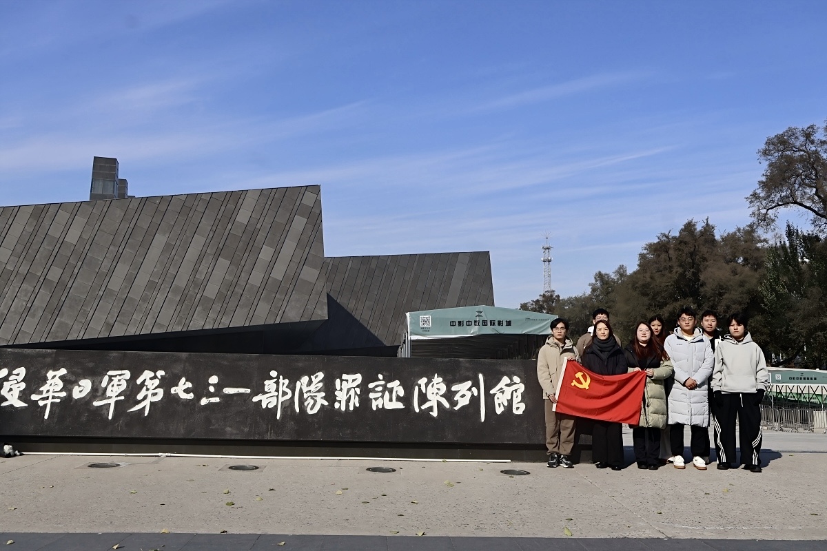 侵华日军第七三一部队罪证陈列馆作为世界反法西斯战争的重要历史见证,是承载民族记忆、警示后人的重要爱国主义教育基地。八十载岁月流逝,历史并未远去。初冬的七三一部队遗址,在苍茫天空下更显肃穆悲怆。师生们怀着沉重的心情,跟随讲解员步入这片承载着民族血泪的记忆之地。在罪证陈列馆内,大量无可辩驳的图片、文献、实物和影像资料,系统而全面地揭露了侵华日军进行细菌战、人体实验等反人类罪行;在旧址废墟前,断壁残垣无声地诉说着当年的残酷与黑暗。每一处遗迹都是一本沉重的历史教科书,每一次凝视都是一次直抵灵魂的拷问,让师生们深刻感受到了战争的法西斯本质与和平的来之不易。
